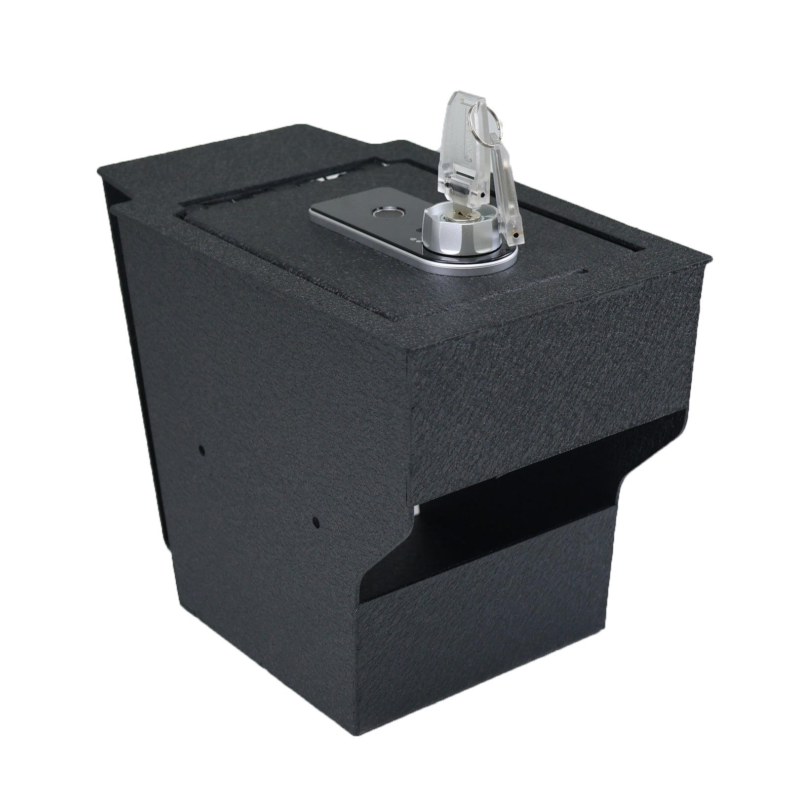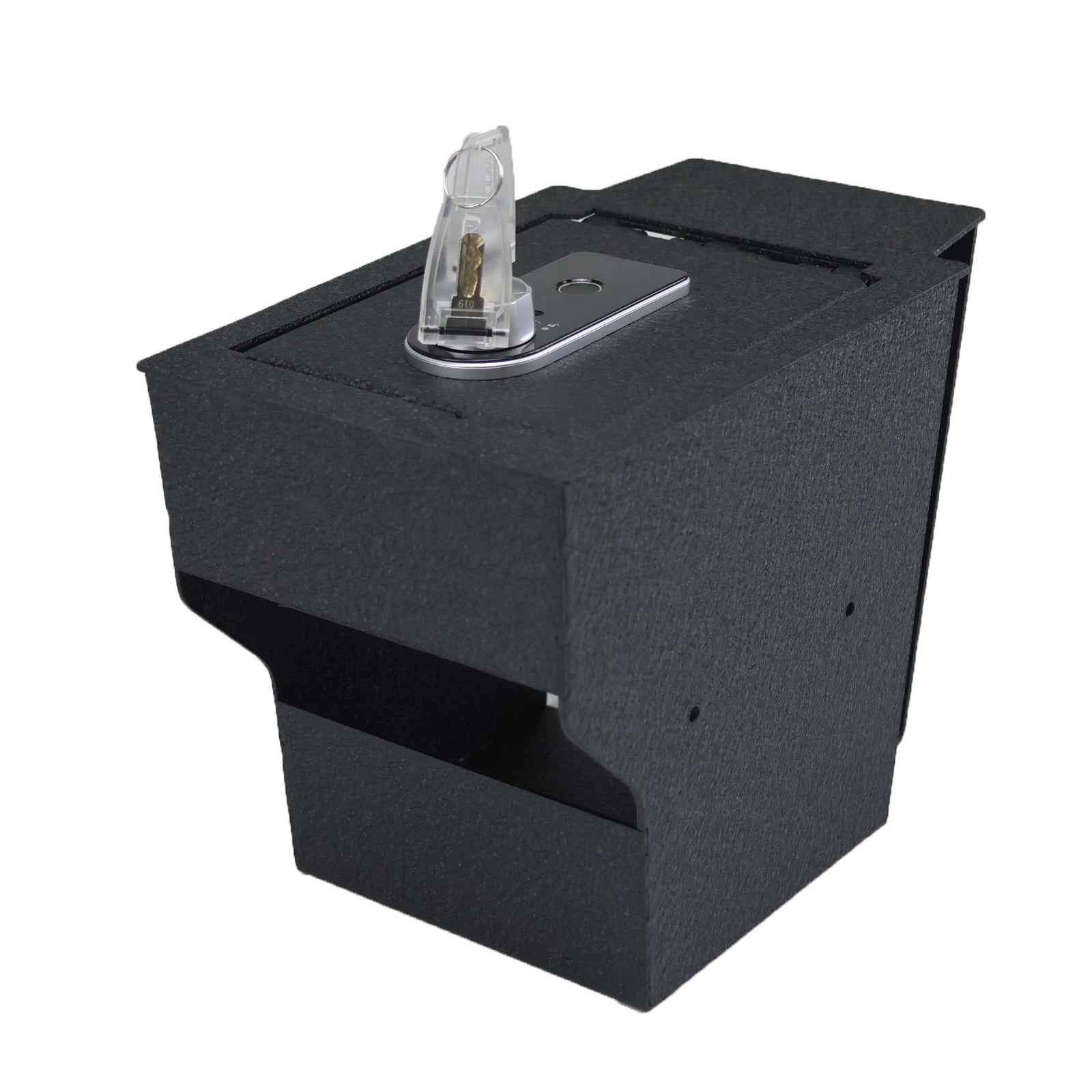 It has an Excellent fingerprint lock combination and tamper-proof hinge, which is fixed in the car with firm bolts to prevent prying.Please note that the lock requires Alkaline Batteries for proper operation.