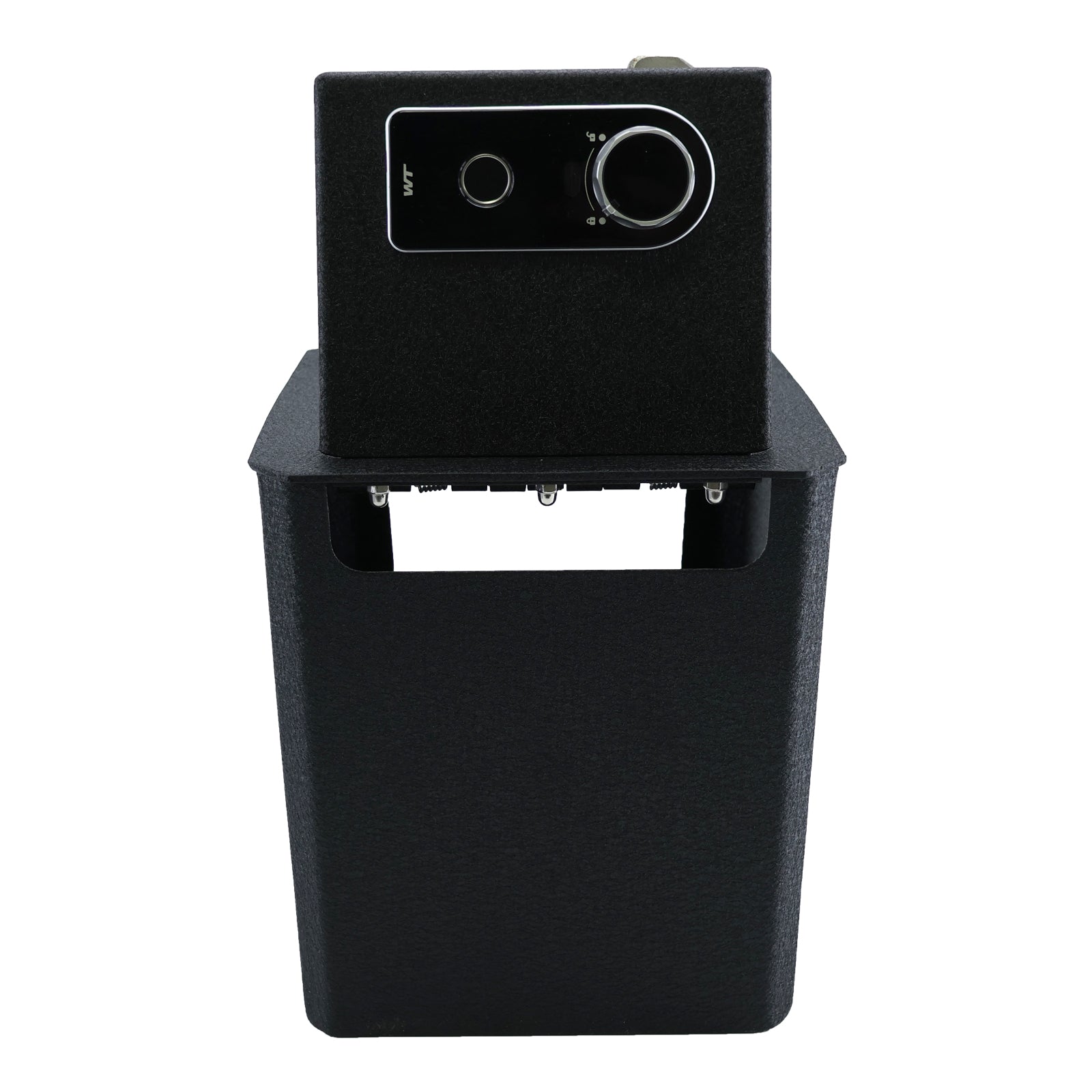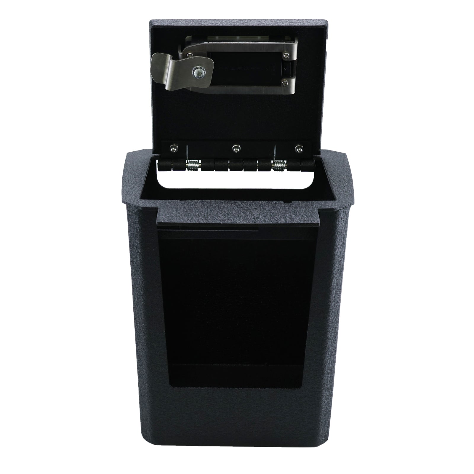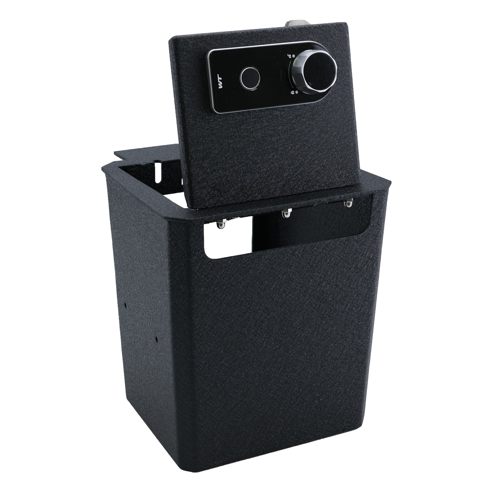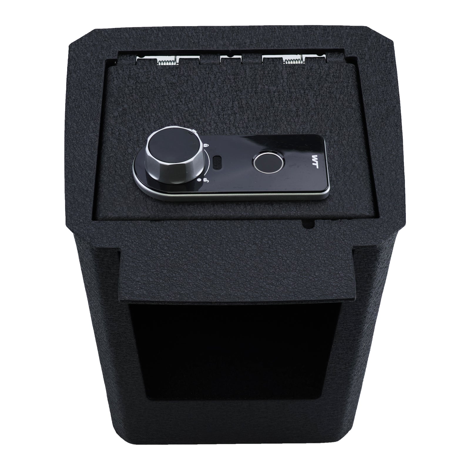 It has an Excellent fingerprint lock combination and tamper-proof hinge, which is fixed in the car with firm bolts to prevent prying.Please note that the lock requires Alkaline Batteries for proper operation.