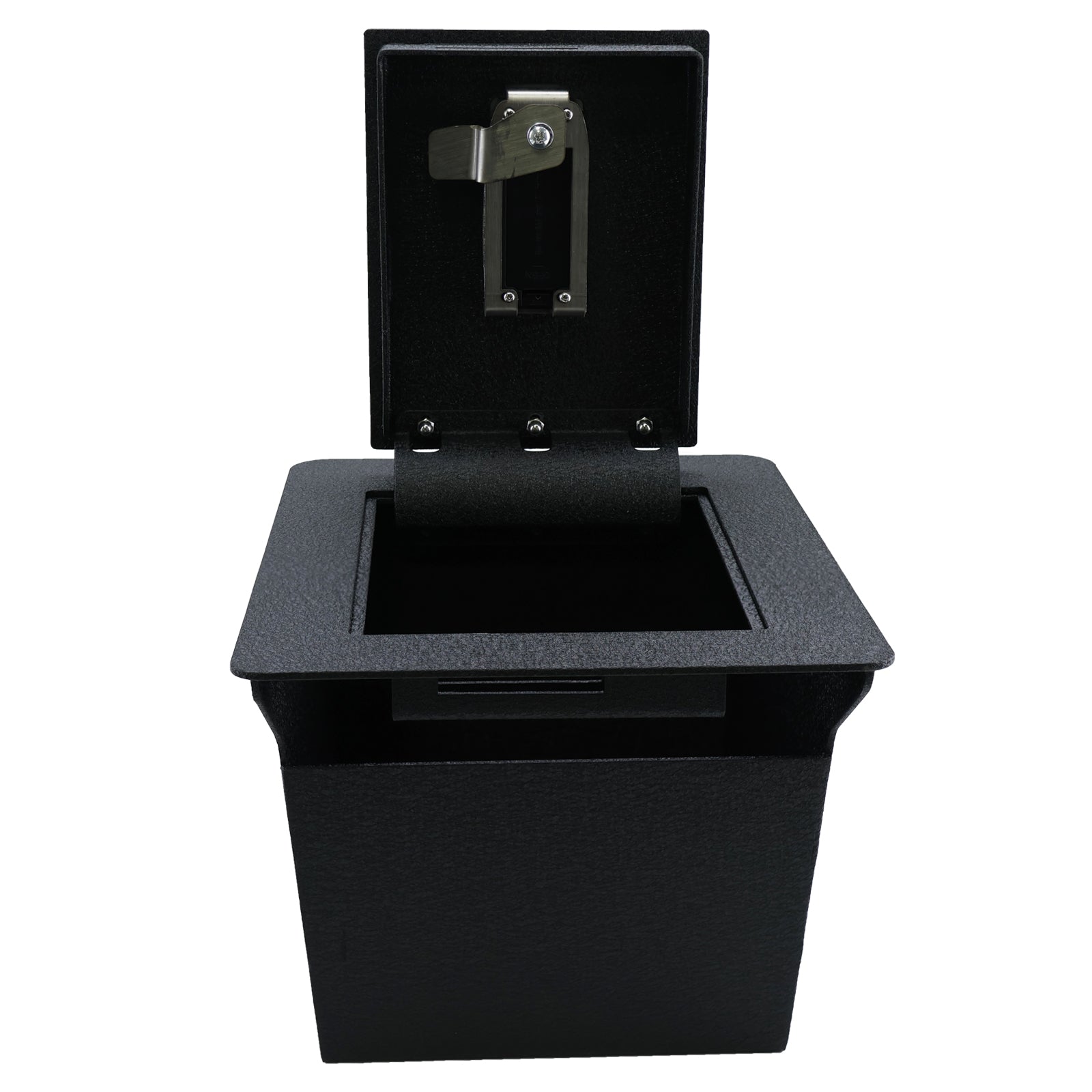 It has an Excellent fingerprint lock combination and tamper-proof hinge, which is fixed in the car with firm bolts to prevent prying.Please note that the lock requires Alkaline Batteries for proper operation.