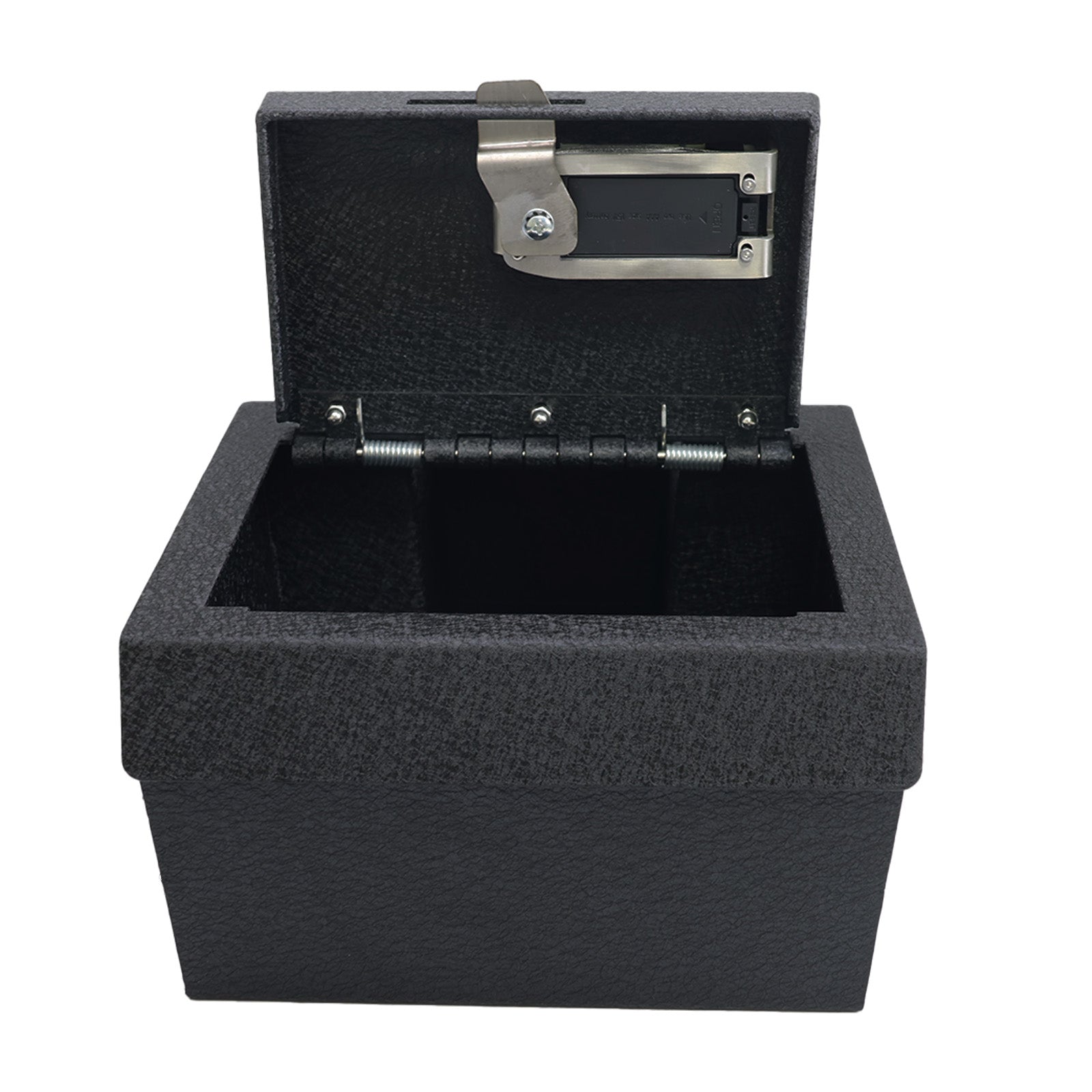 It has an Excellent fingerprint lock combination and tamper-proof hinge, which is fixed in the car with firm bolts to prevent prying.Please note that the lock requires Alkaline Batteries for proper operation.