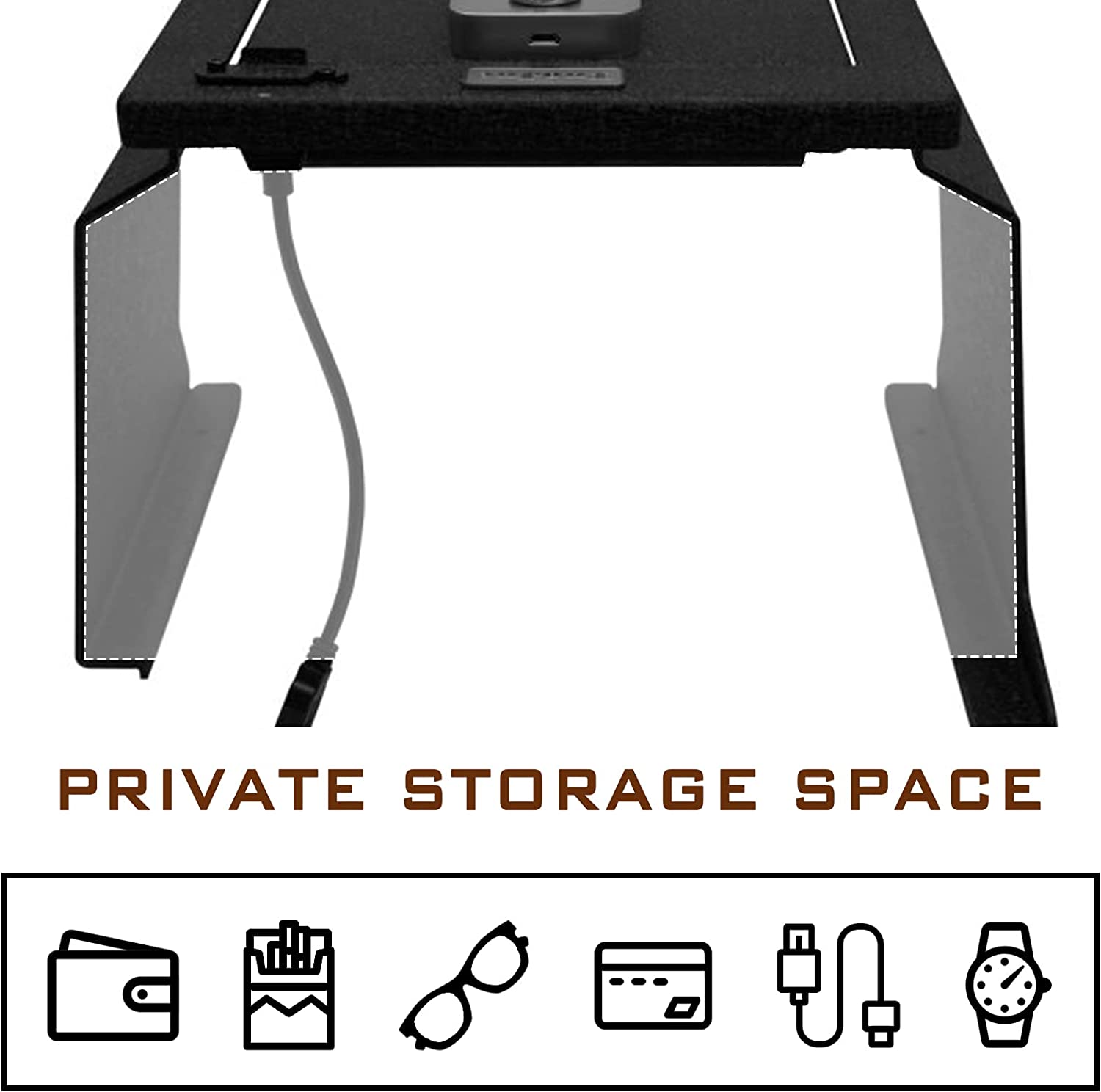 - Puede guardar de forma segura su billetera, arma y otros objetos de valor.
