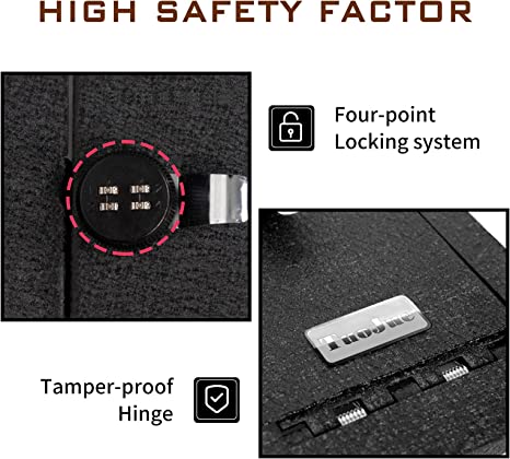 - Tiene una excelente combinación de 4 dígitos y cerradura resistente a taladros. Los números son claros, hay 10.000 combinaciones, difíciles de descifrar y más seguras.
