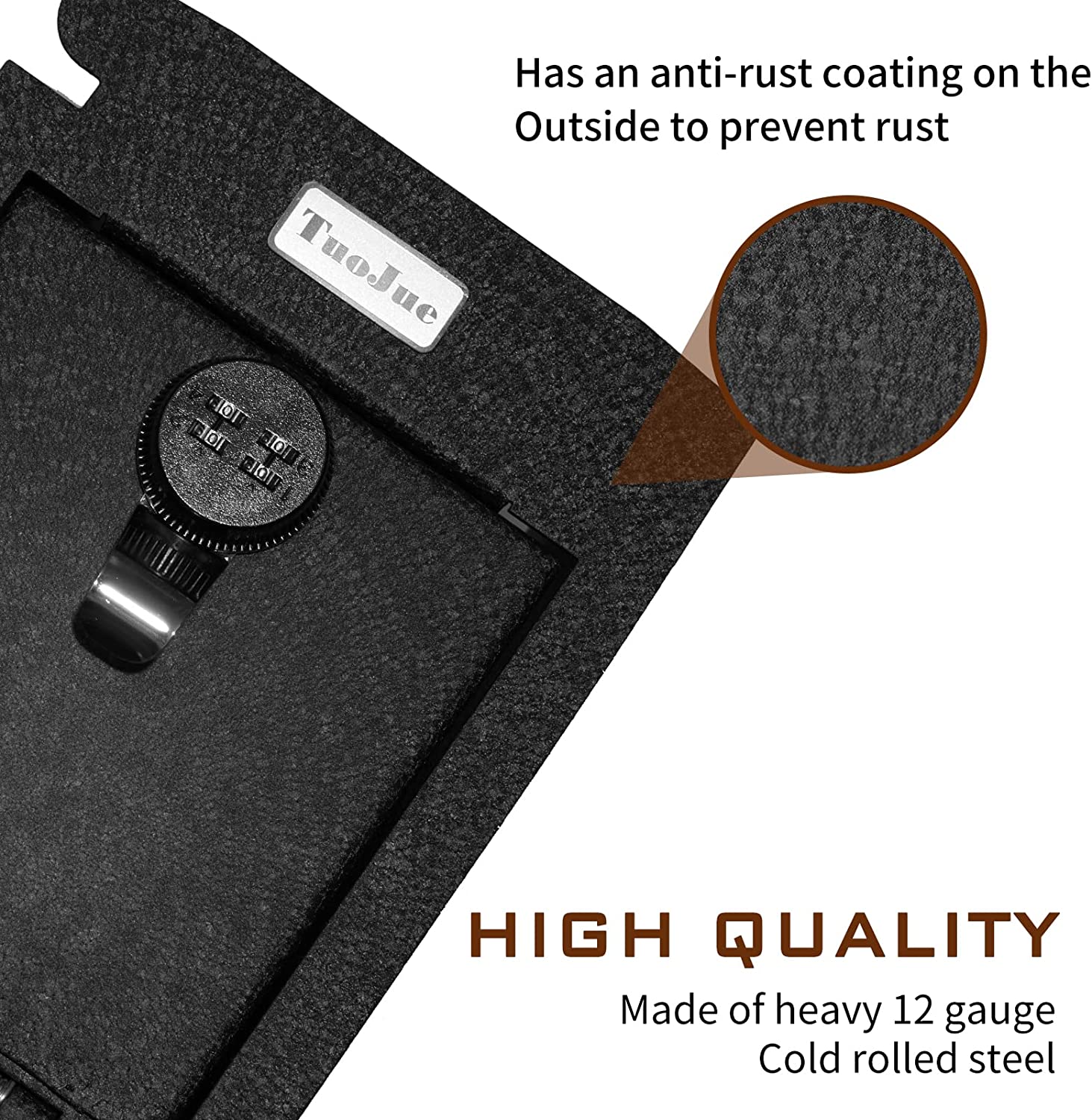 - Tiene una excelente combinación de 4 dígitos y cerradura resistente a taladros. Los números son claros, hay 10.000 combinaciones, difíciles de descifrar y más seguras.
