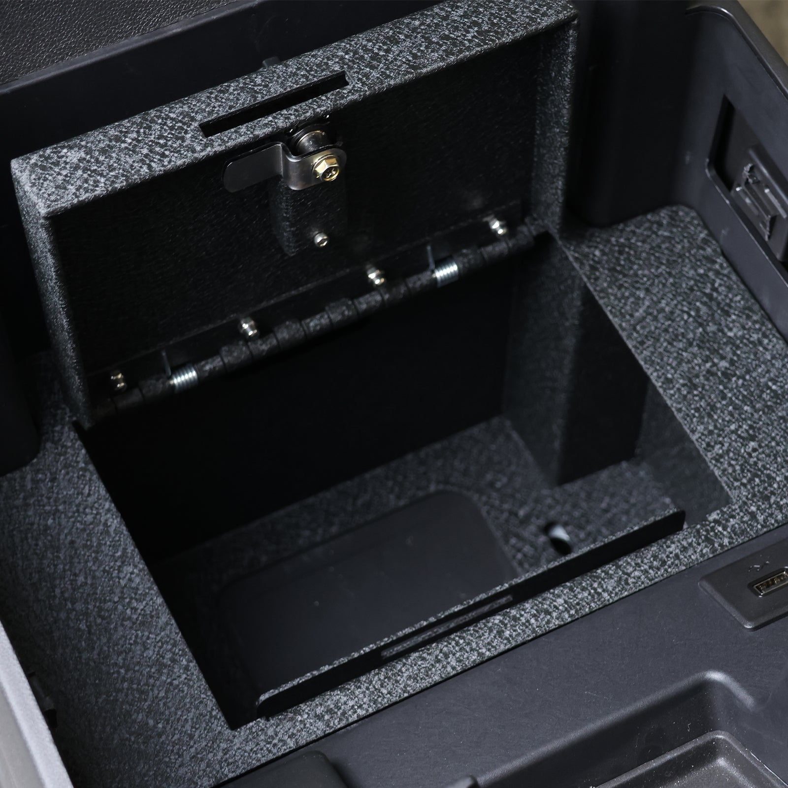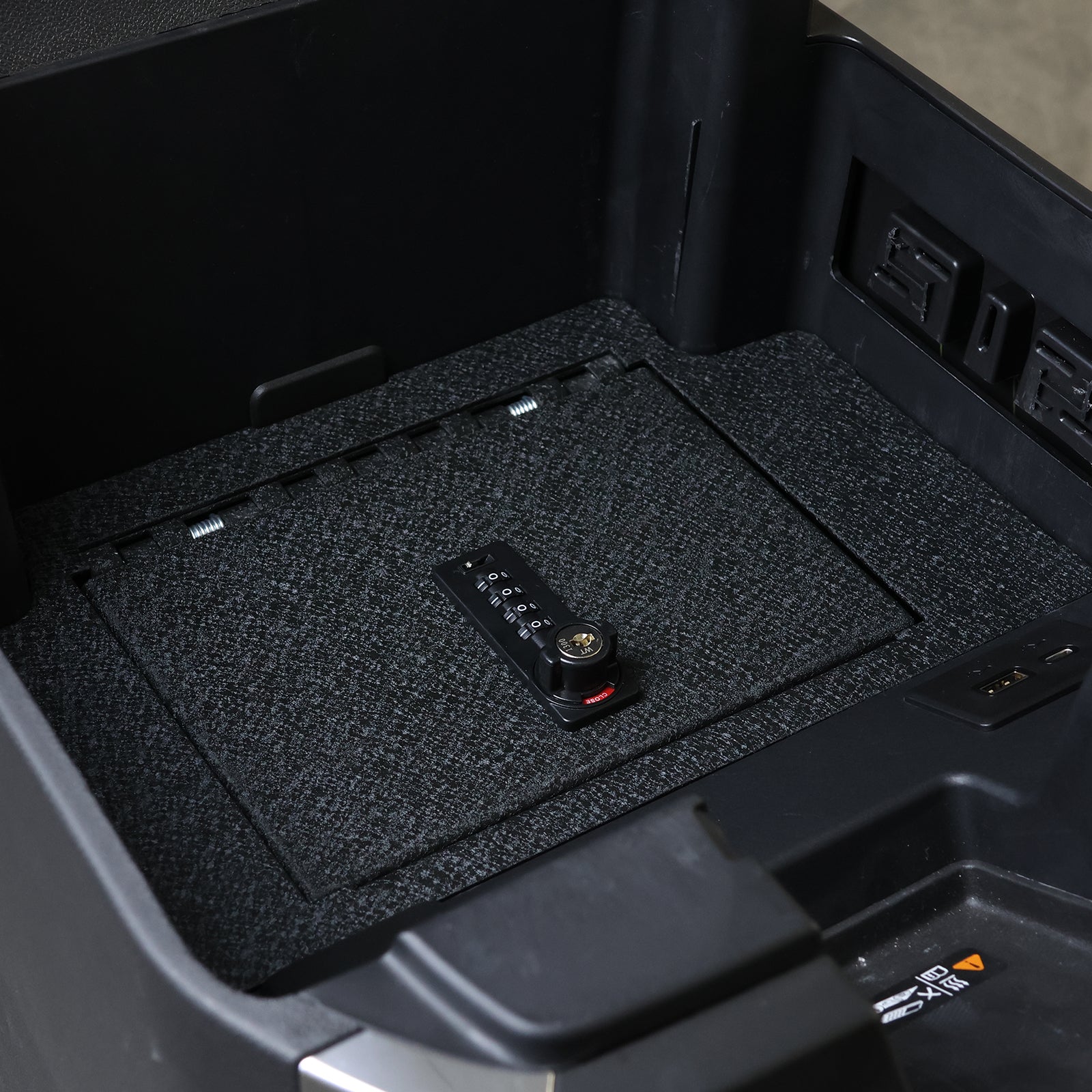 Caja fuerte para consola central para armas para Chevy Silverado 1500,2500HD,3500HD/GMC Sierra 1500 2023-2024, cerradura de combinación de 4 dígitos con llave de respaldo.