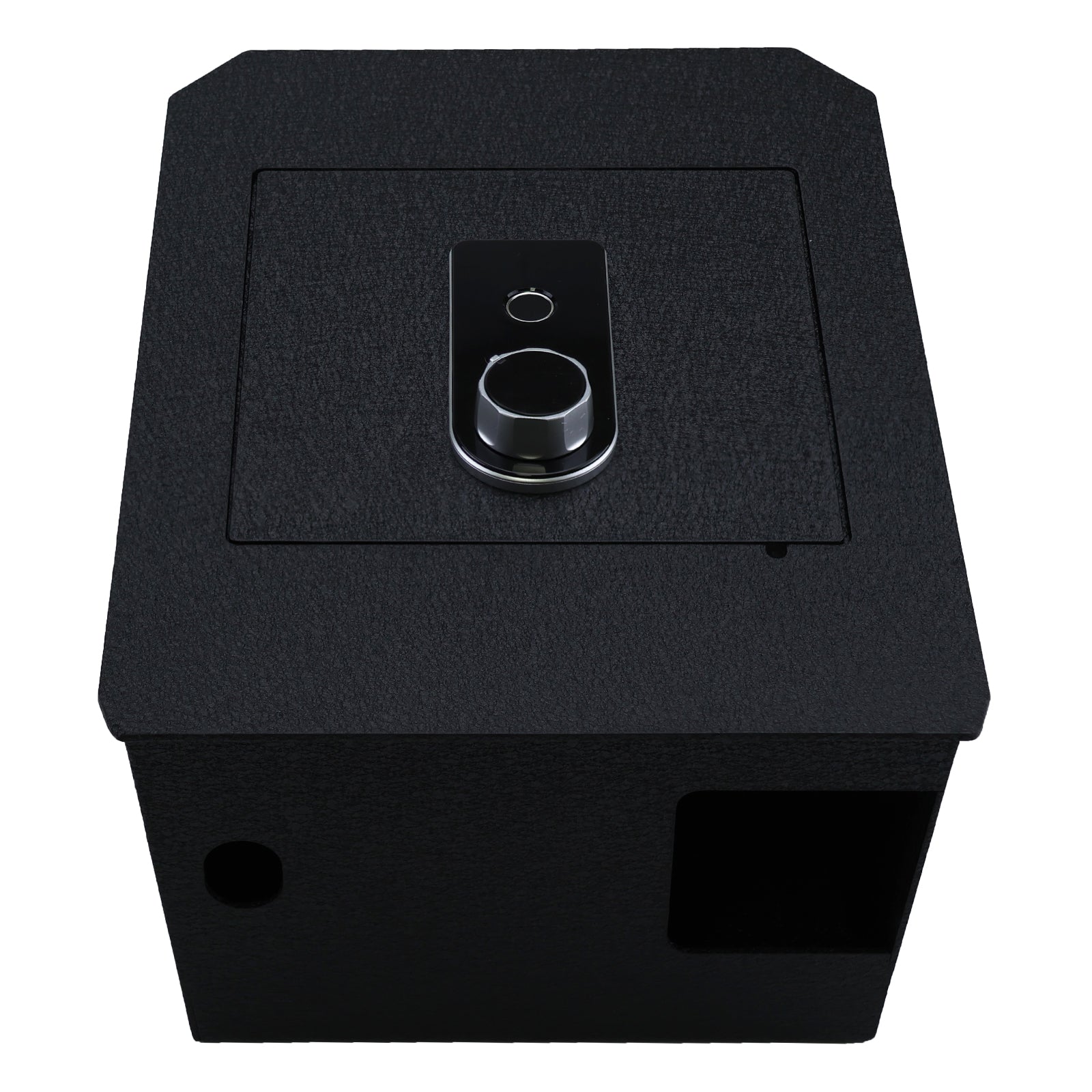 It has an Excellent fingerprint lock combination and tamper-proof hinge, which is fixed in the car with firm bolts to prevent prying.Please note that the lock requires Alkaline Batteries for proper operation.