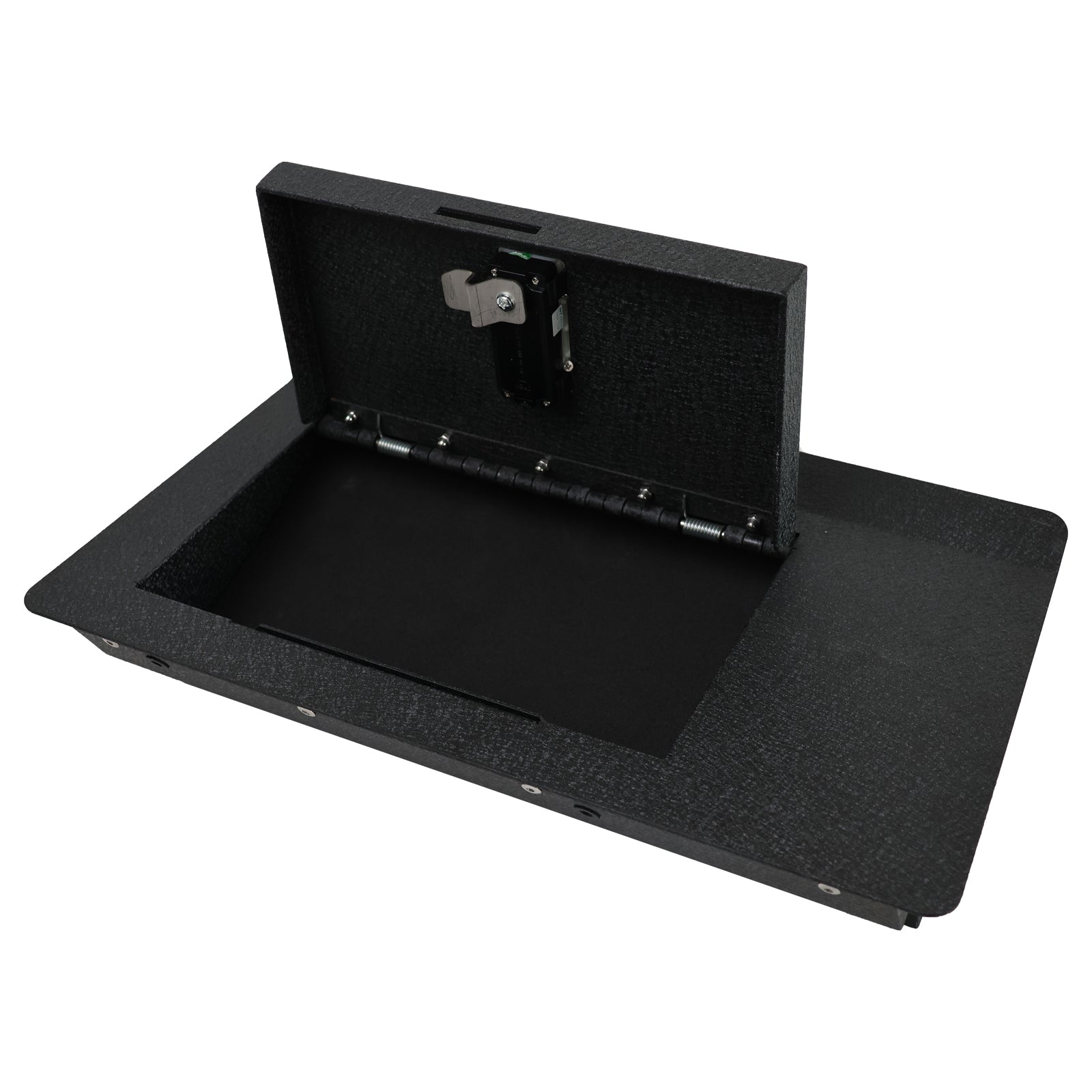 Este almacenamiento LockBox seguro debajo de la consola del asiento es compatible con