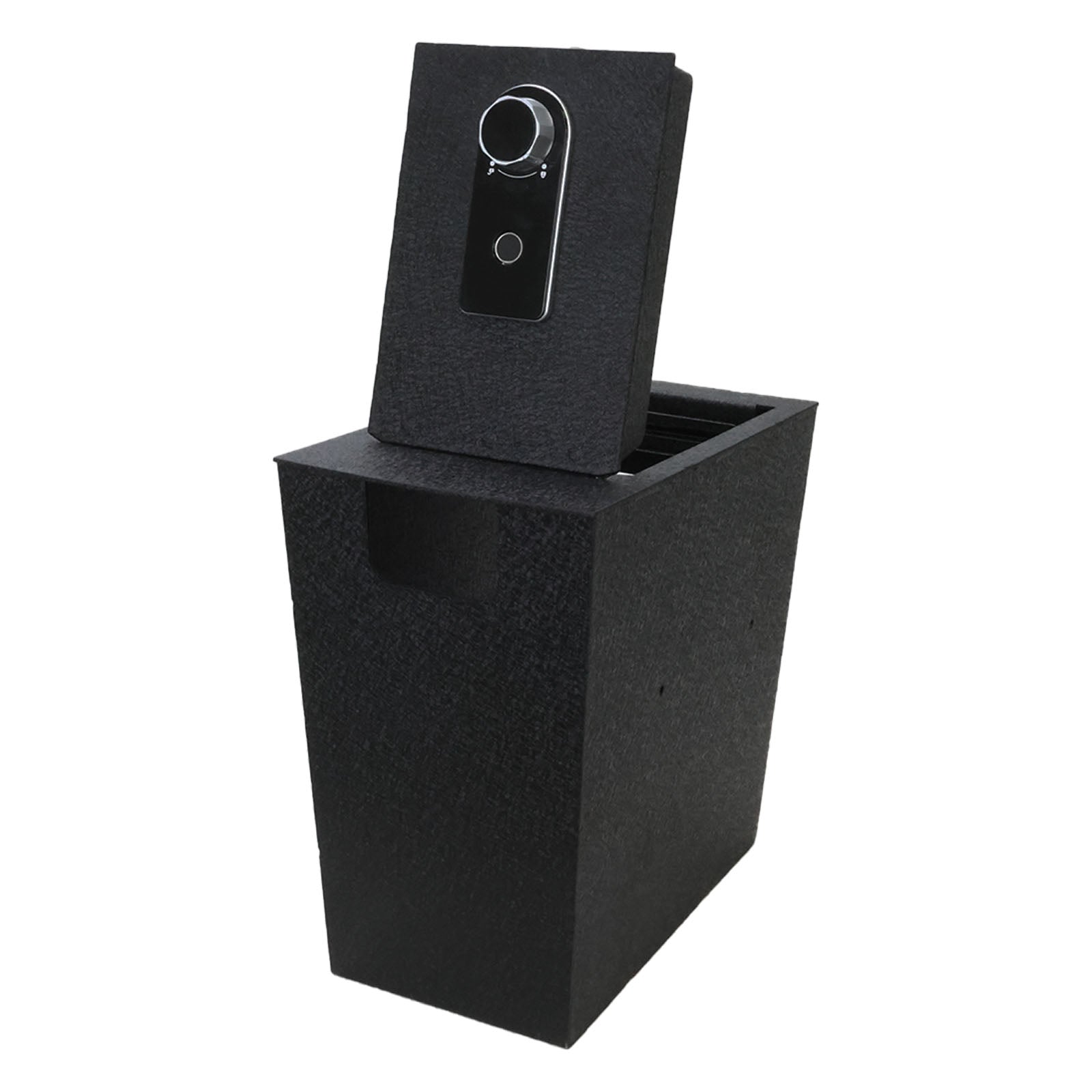 It has an Excellent fingerprint lock combination and tamper-proof hinge, which is fixed in the car with firm bolts to prevent prying.Please note that the lock requires Alkaline Batteries for proper operation.