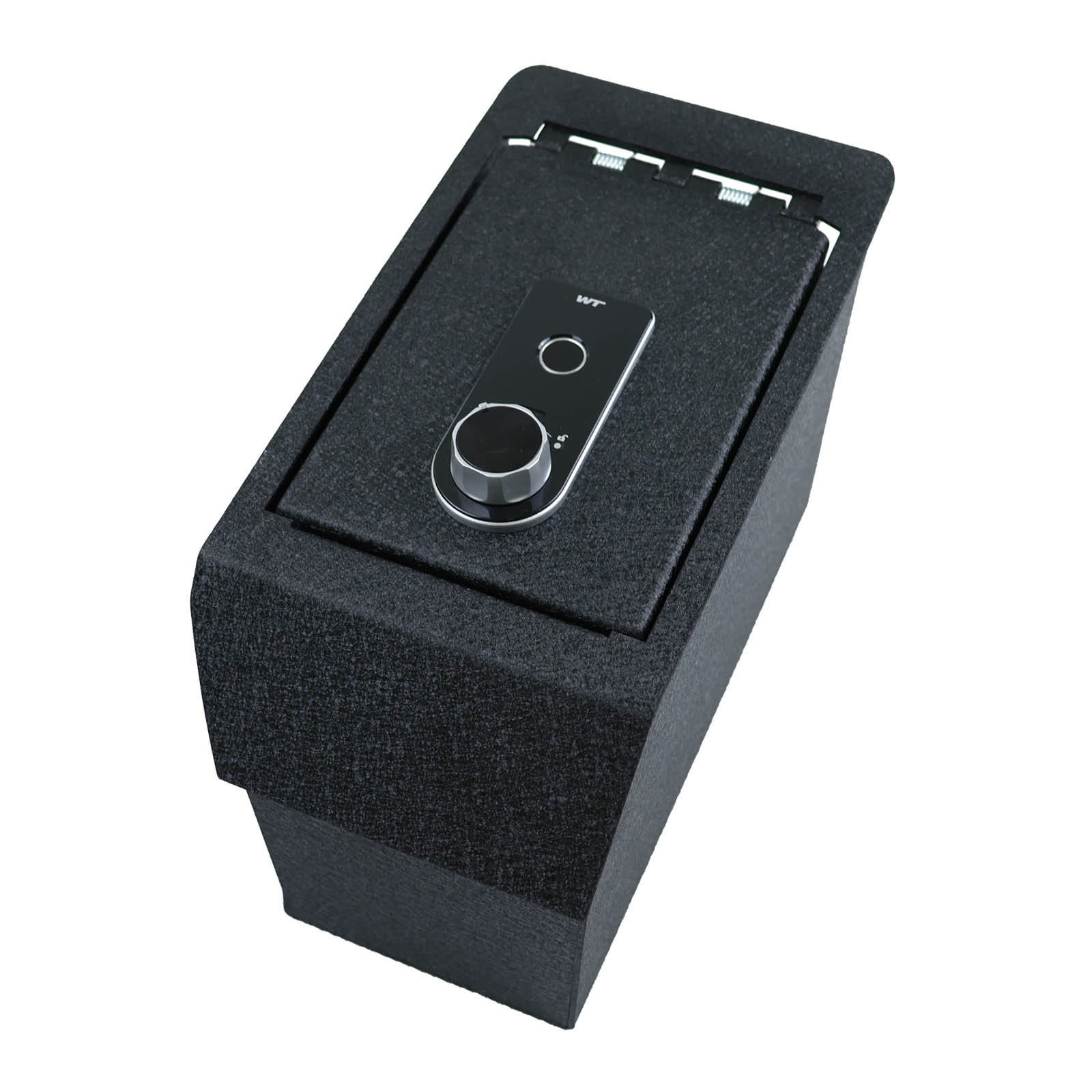 It has an Excellent fingerprint lock combination and tamper-proof hinge, which is fixed in the car with firm bolts to prevent prying.Please note that the lock requires Alkaline Batteries for proper operation.