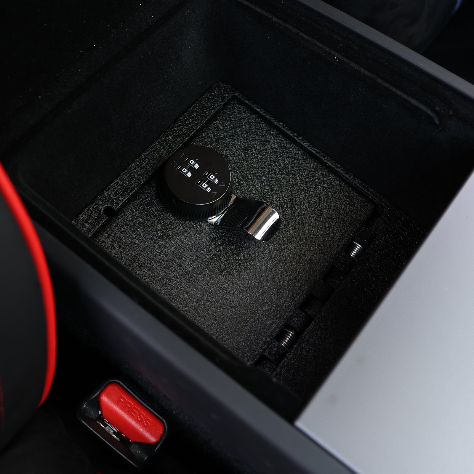 Center Console Gun Safe for 2024-2025 Tesla Model 3, 2025 Tesla Model Y, 4-Digit Combo Lock