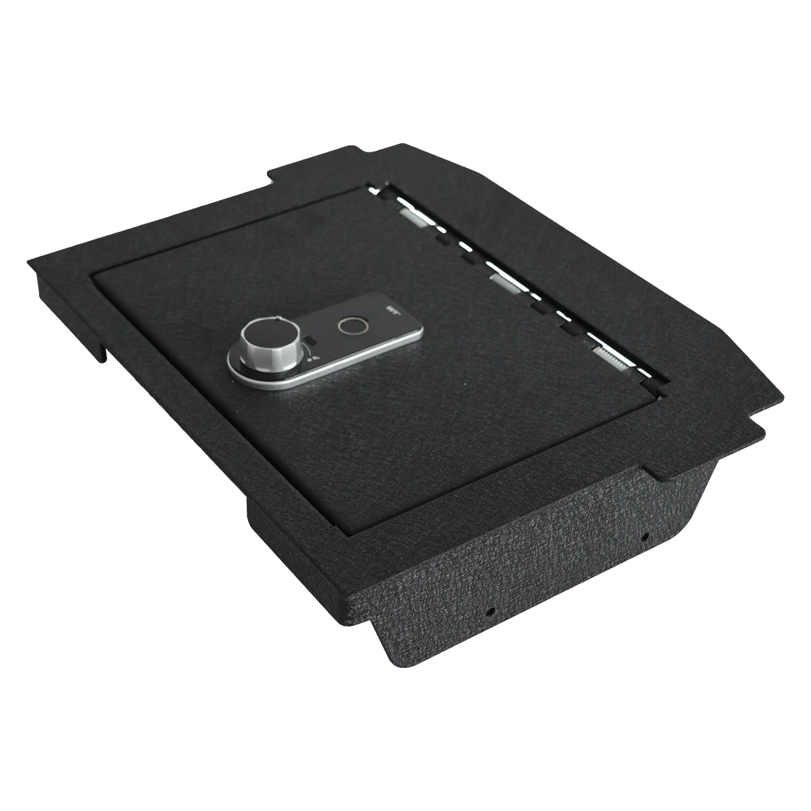 - It has an Excellent fingerprint lock combination and tamper-proof hinge, which is fixed in the car with firm bolts to prevent prying. Please note that the lock requires Alkaline Batteries for proper operation.