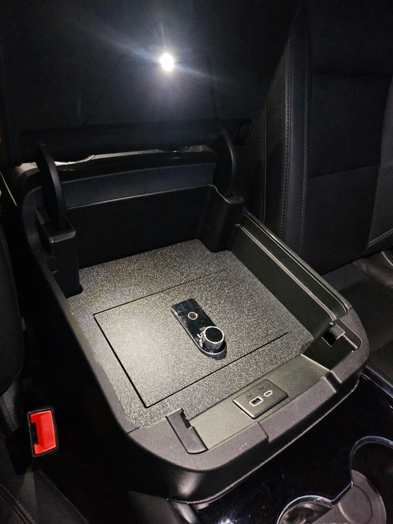 Pro Center Console Safe Gun Safe for 2021-2026 Chevrolet Suburban/Tahoe GMC Yukon/Yukon XL Console Safe, Fingerprint Lock with Key