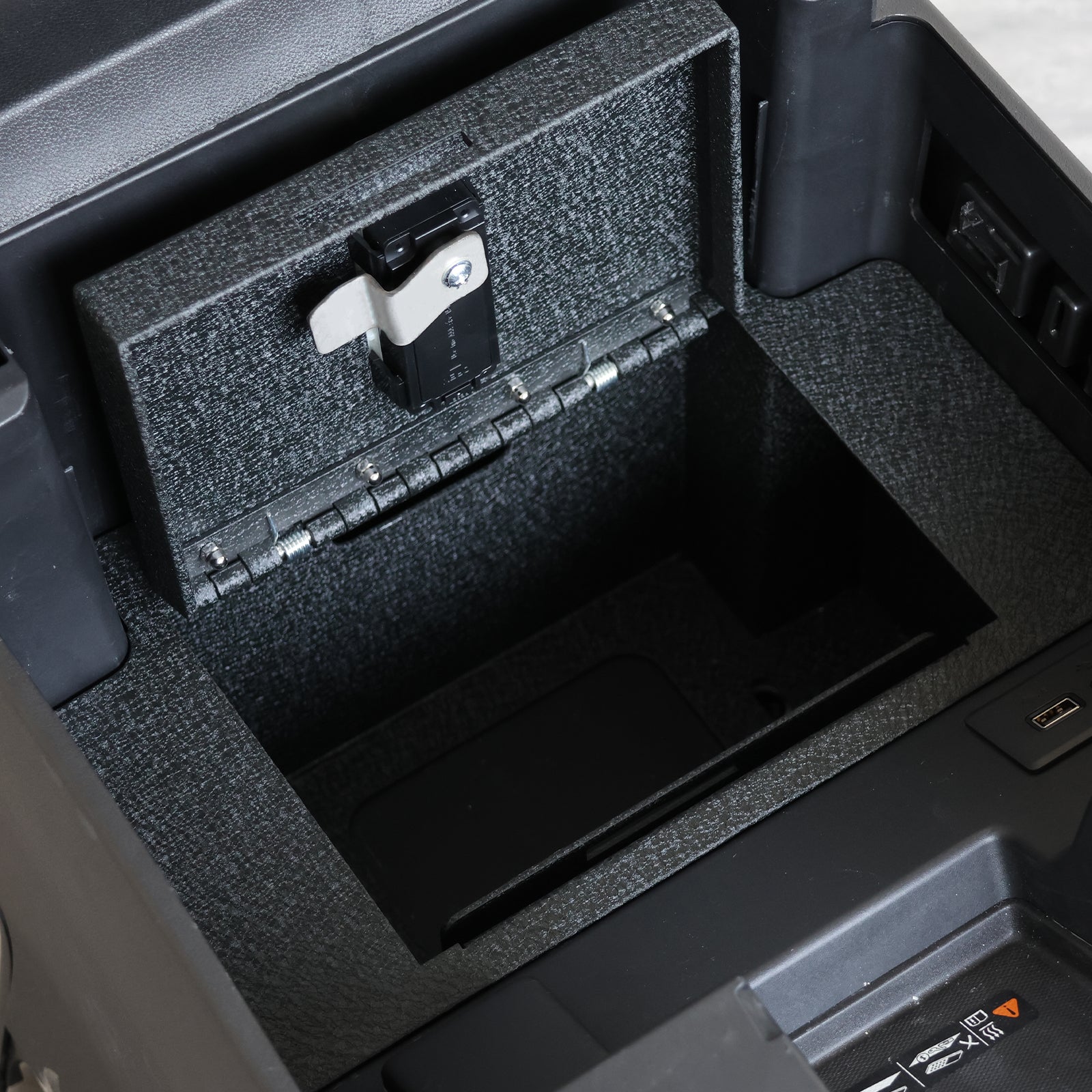 Center Console Safe Gun Safe for 2023-2026 Chevy Silverado 1500,2500HD,3500HD/GMC Sierra 1500, Fingerprint Lock with Backup Key.