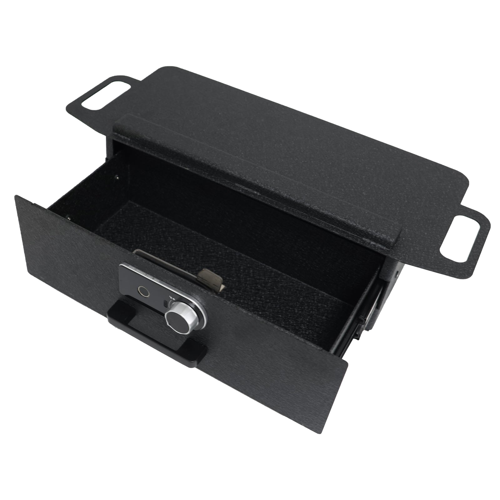 It has an Excellent fingerprint lock combination and tamper-proof hinge, which is fixed in the car with firm bolts to prevent prying.Please note that the lock requires Alkaline Batteries for proper operation.